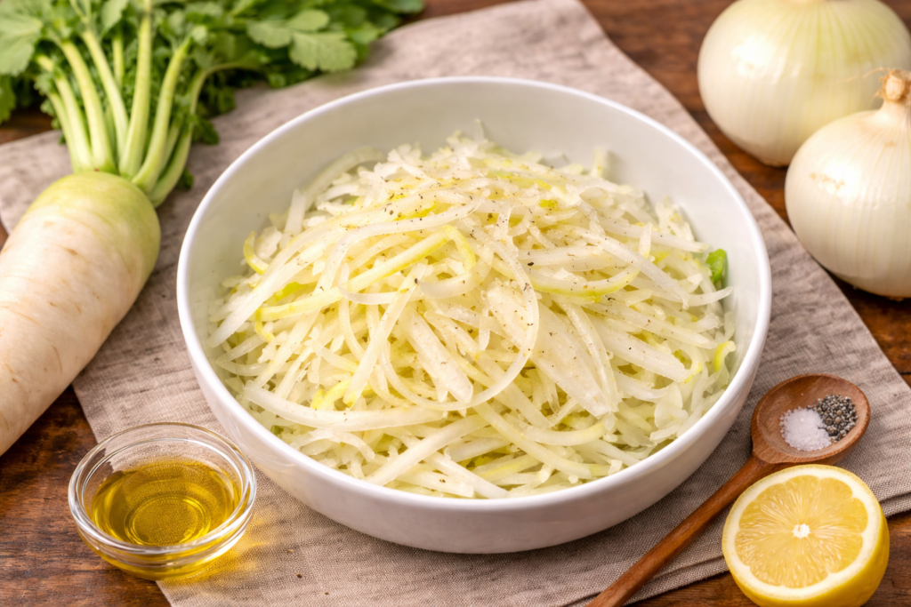レシピ1:新玉ねぎと大根のさっぱり春サラダ