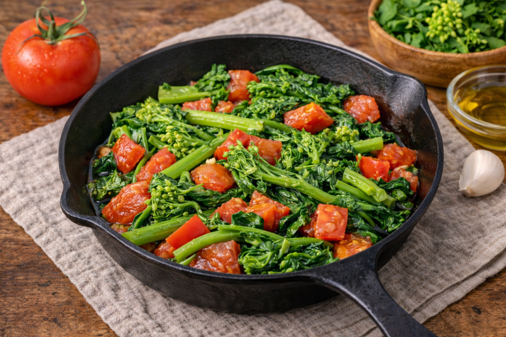 レシピ2:のらぼう菜とトマトのオリーブ炒め